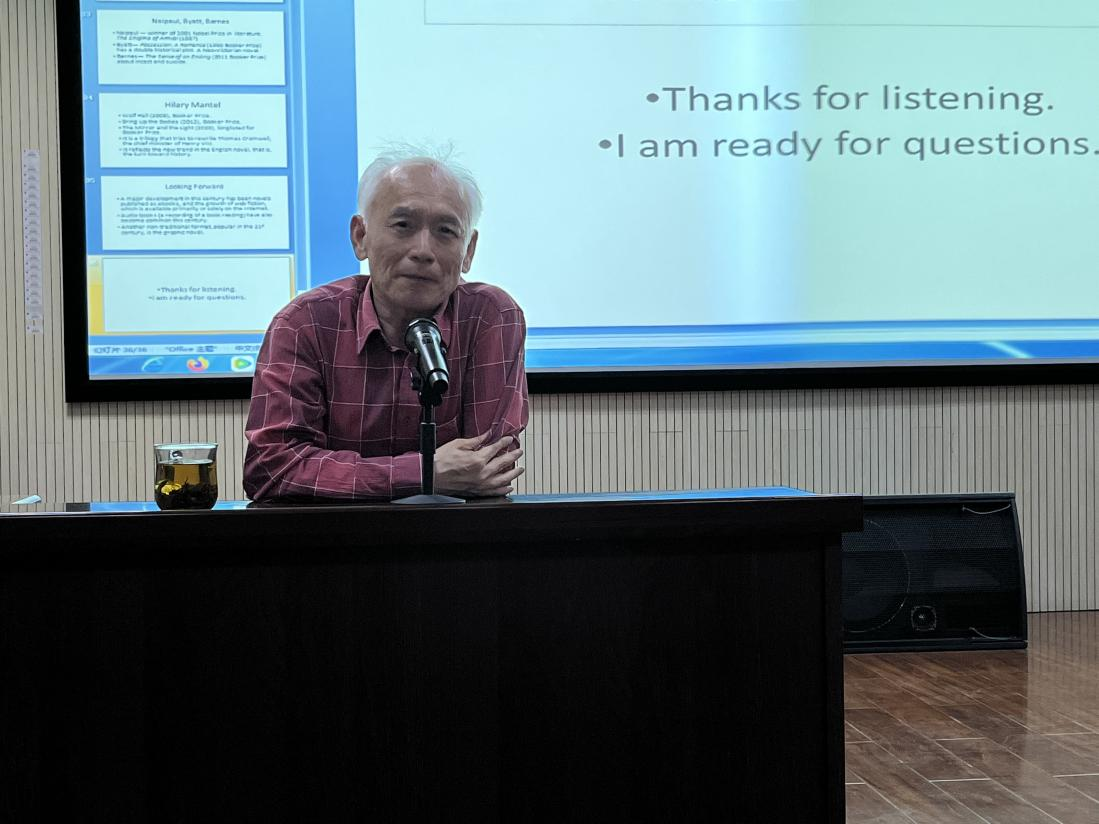 5月18日上午,太阳成集团tyc7111邀请河南大学博士生导师高继海教授在A07-501作了题为“英国小说的流变”的学术讲座。学术讲座由太阳成集团tyc7111院长李艳叶教授主持,100多名师生聆听了讲座。