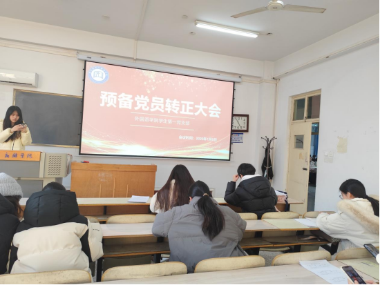 芦琳代表党支部向新接收的预备党员、新转正的正式党员表示祝贺,并结合全会精神与外语专业特色提出三点要求:一是深化理论武装,将学习党的二十届四中全会精神作为重要政治任务,做到学思用贯通、知信行统一;二是立足专业建功,将外语专业学习与国家战略需求结合,在翻译实践、国际交流等领域发挥青年党员先锋模范作用;三是践行党员本色,以党员标准严格自律,在服务同学、奉献集体中补足短板、锤炼作风。新转正党员与新发展预备党员纷纷表态,将以此次会议为新起点,牢记初心使命,以实际行动践行入党誓言,在新时代新征程中展现青年党员的过硬作风与昂扬姿态。