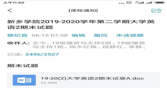各教研主任考前提前发布考试通知,要求师生注意考试具体细节。