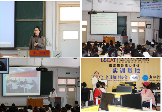 英语专业负责人张小宁、翻译专业负责人张利敏、商务英语专业负责人傅秋玉三位老师主要从专业介绍、行业现状概述、就业前景等方面为新生进行了详细讲解。卫佳琪、高欣瑶两位高年级优秀学生代表给新生分享了自身学习经验并鼓励新生树立远大志向。讲座结束后全体新生在学院实验实训中心主任冯明老师的带领下参观了外语实践教学中心,进一步了解了学院的专业实践平台建设。