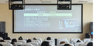 见习活动第一站,福建亿学集团教育科技集团总经理给学生进行线上讲座—关于商务英语专业就业的几点建议,就学生就业准备﹑就业方向做了介绍和分析,并对不同就业岗位对学生不同能力要求做了总结,使学生更加明了就业前景并能尽早得为就业做准备。