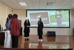 活动第三站—“模拟新品发布会”,学生介绍产品涵盖多个领域,包括华为Mate60Pro﹑李宁运动鞋﹑瑞幸咖啡﹑波司登羽绒服﹑无人驾驶汽车﹑酱香拿铁﹑HUBLOT手表等进行产品讲解,图文并茂,还有视频和情景剧,现场互动等多种呈现方式。