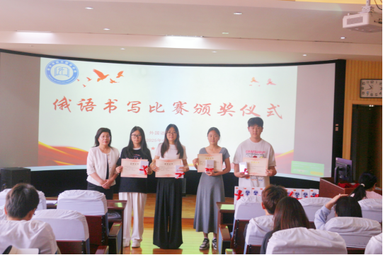 通过线上网络投票及线下专业教师评审,最终从118件参赛作品中评选出一二三等奖共20幅作品,并举办了颁奖仪式。太阳成集团tyc7111院长李艳叶在颁奖仪式上对获奖同学表示祝贺,并指出通过书写不仅可以夯实学习基础,更能感受俄语文化魅力,希望同学们以此次比赛为契机,持续保持对俄语学习的热情,在俄语学习过程中深耕不辍,以语言为桥,跨越文化藩篱,在探索与实践中收获知识硕果。