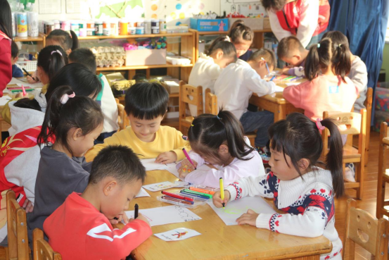 课堂开始,志愿者以中英双语向小朋友们讲解了张玉滚毕业后放弃在城市工作的机会,回到家乡高丘镇黑虎庙小学教学,扎根深山22年,靠扁担挑出乡村孩子的未来的故事。接着,志愿者们分发提前准备的“双语单词卡”,带领小朋友们学习趣味英语单词,通过三个小游戏“绘画游戏”、“扭扭棒”与“手工大王”来加深他们对单词的记忆。最后,志愿者们积极与小朋友们互动,带领他们学习时代楷模精神的相关知识,让其更加深入地了解时代楷模,学习时代精神。